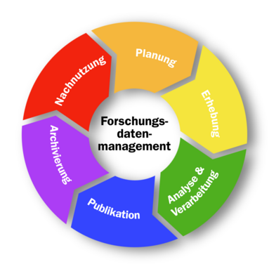 Das Modell des Datenlebenszyklus beschreibt die verschiedenen Stadien, welche Forschungsdaten durchlaufen können. Er wird teilweise unterschiedlich detailliert und strukturiert dargestellt, umfasst aber meist sechs Elemente: Planung, Erhebung, Analyse, Publikation, Archivierung und Nachnutzung. Jedes dieser Elemente beinhaltet unterschiedliche Maßnahmen. Der Datenlebenszyklus hilft dabei den Überblick zu waren und bei der Umsetzung von zielgerichtetem Forschungsdatenmanagement.